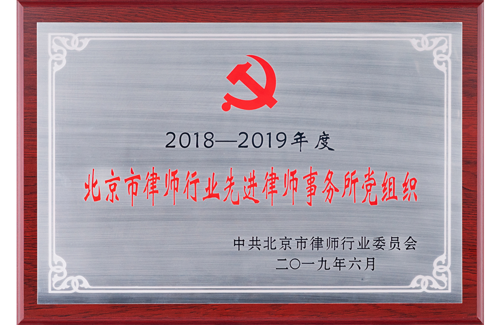 北京市律师行业先进律师事务所党组织(2018-2019年度) -